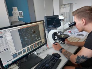 Adam Wierzbicki investigates, among other topics, calcareous nannofossils under the microscope together with Paula Granero Ordóñez and Prof. Michael Wagreich from the University of Vienna.
